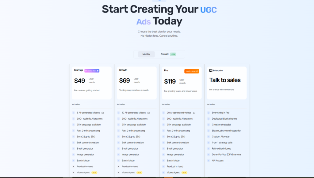 The Pro/Scale Tier: Designed for power users who need to generate fresh creatives daily.